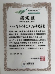 この度、弊社は2026年3月9日に健康経営優良法人の認定を取得致しました
